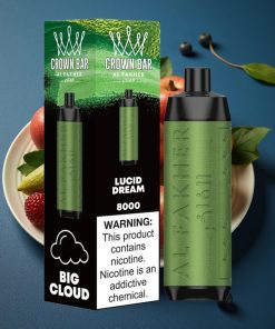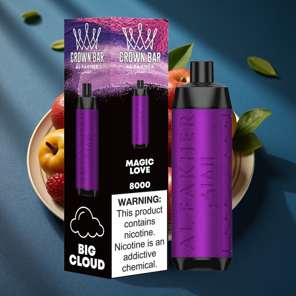 Der Al Fakher Crown Bar 8000 setzt auf hochwertige Materialien und eine konstante Leistungsabgabe, um ein gleichmäßiges Dampferlebnis ohne unerwünschte Nebenprodukte zu gewährleisten. Mit 5% Nikotin (50mg/ml) bietet er eine ausgewogene Alternative für Umsteiger oder erfahrene Nutzer – ohne Kompromisse bei Reinheit oder Aromatiefe.